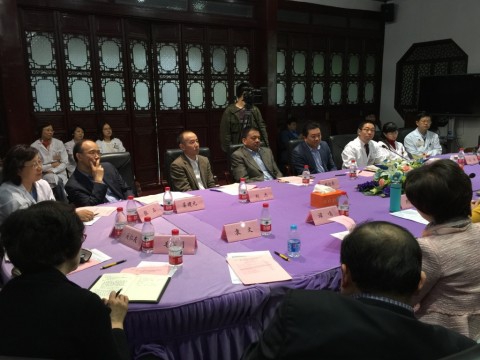 4月6日上午,市卫计委科教处周蓉副处调研员、市医师协会常务副会长兼秘书长谭鸣率13位市督导专家来华山