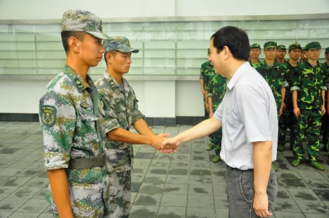 信息学院领导冒雨慰问张江校区13级军训师生及教官