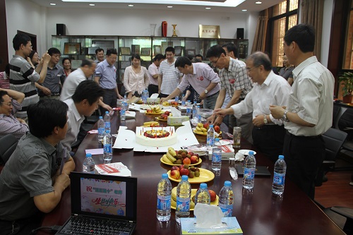 5月27日中午在物理楼138会议室举办集体生日,信息学院党委书记周立志、工会主席胡光喜以及全院寿星4