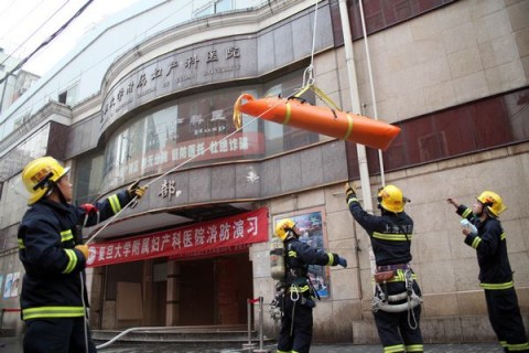 妇产科医院开展消防演习 100余人参加演习,空中施救显难度