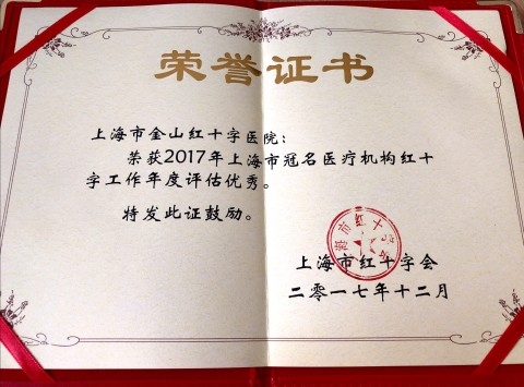 附属金山医院荣获 2017年上海市冠名医疗机构红十字工作年度评估优秀单位