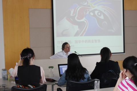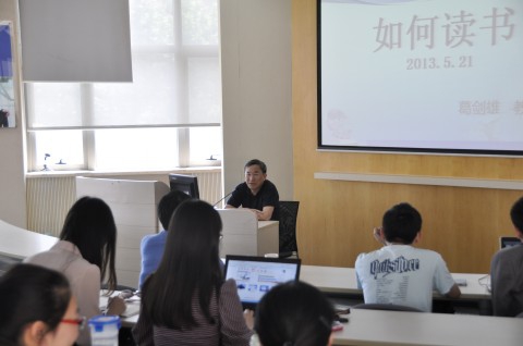 2013年6月4日,著名教授顾晓鸣走进经济学院专业学位实务课堂,与同学们分享“国学中的商