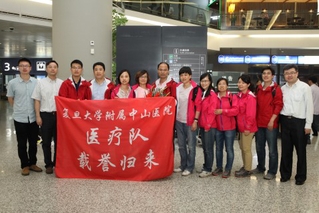 9月12日下午,2014年中山医院国家医疗队的10位队员圆满完成援疆巡回医疗任务顺利抵沪,秦净副院长