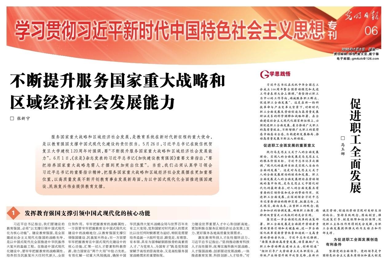 服务国家重大战略和区域经济社会发展,是教育系统在新时代新征程的重大使命,是以教育强国支撑中国式现代化建设的责任担当。5月26日...