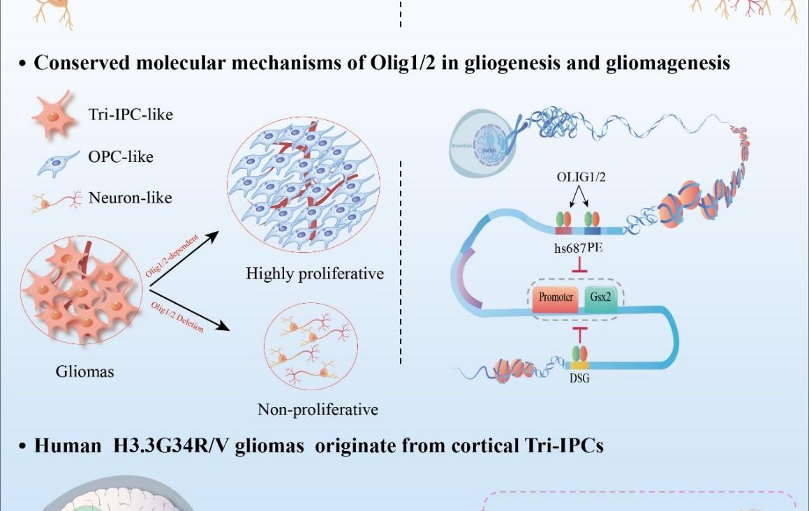 复旦大学脑科学研究院/脑科学前沿科学中心张壮志等揭示Olig1/2调控大脑皮质发育与胶质瘤发生的...