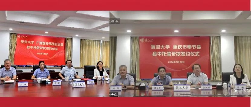 7月29日上午,复旦大学先后举行与广西都安瑶族自治县、重庆市奉节县县中托管帮扶签约仪式。视频在线签署《教育部直属高校县中托管帮...